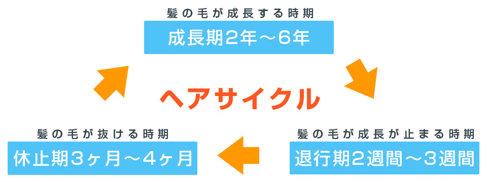 薄毛や抜け毛が目立ち始めたらヘアサイクルが乱れている証拠 成長期よりも休止期の髪の毛が増える事によって髪は薄くなります。